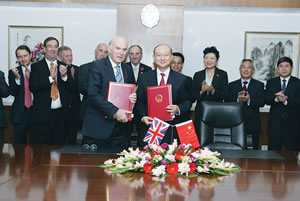 11月8日,国家质检总局局长支树平会见了英国商业创新与技能部国务大臣凯布尔一行,宾主就苏格兰威士忌在华获得地理标志保护、农业食品领域的最新市场准入问题及认证和标准问题等进行了会谈。会谈结束后,支树平和凯布尔分别代表双方签署了《中国国家质量监督检验检疫总局和英国环境、食品与农村事务部关于中国从英国输入种猪的检疫和卫生要求的议定书》。国家质检总局国际司、食品局、国家认监委、国家标准委、动植司、科技司以及英国驻华大使馆、驻广州总领事馆有关官员,中英企业的代表参加了会见和签字仪式。