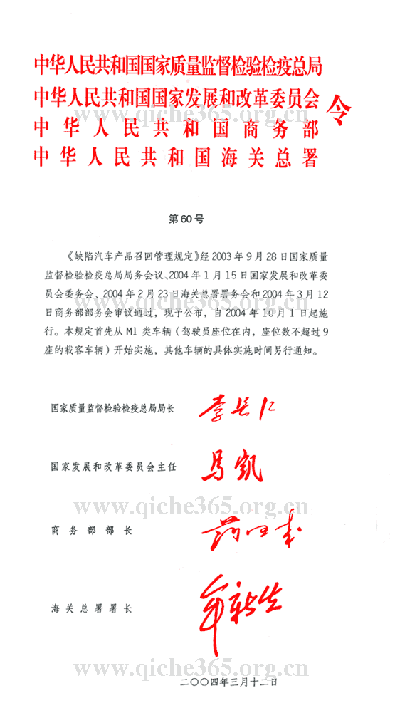缺陷汽车产品召回管理规定-四部委局令
